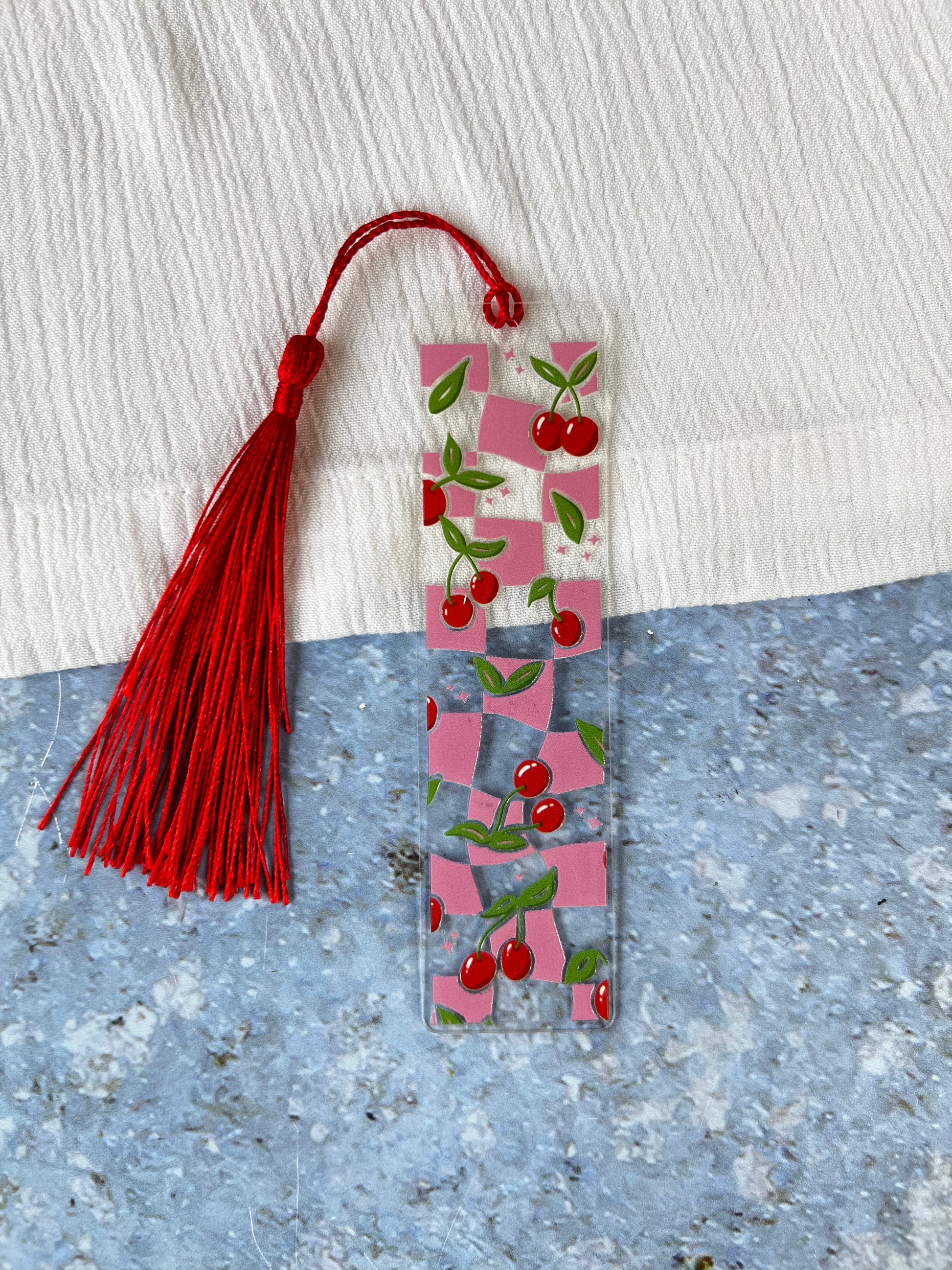 📖 Acryl-Lesezeichen „Cherry Reads“ – Zuckersüße Lesemomente 🍒💖