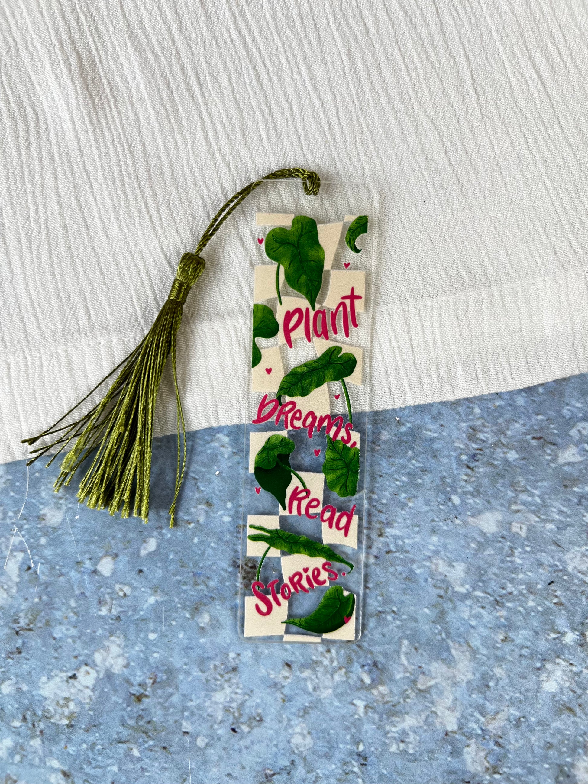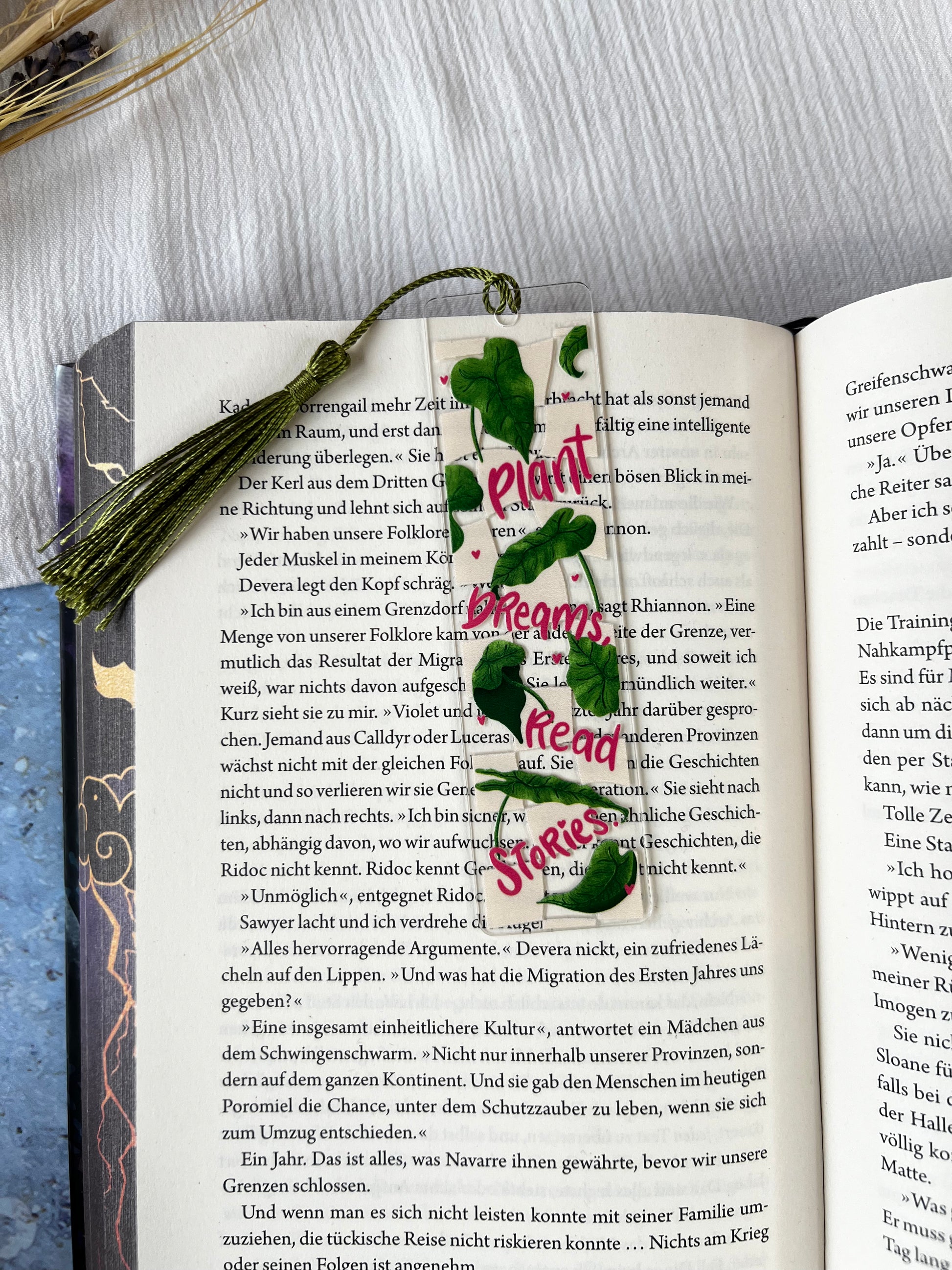 Acryl-Lesezeichen „Plant Dreams, Read Stories“