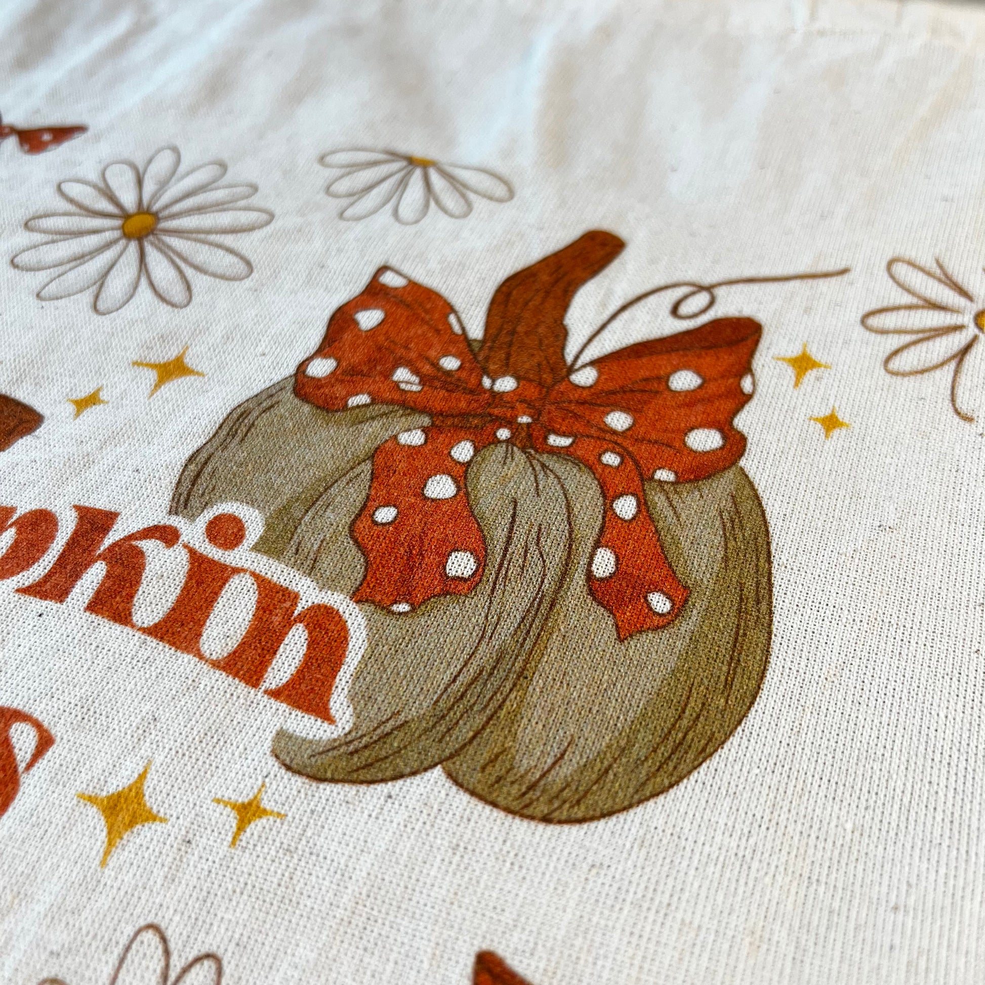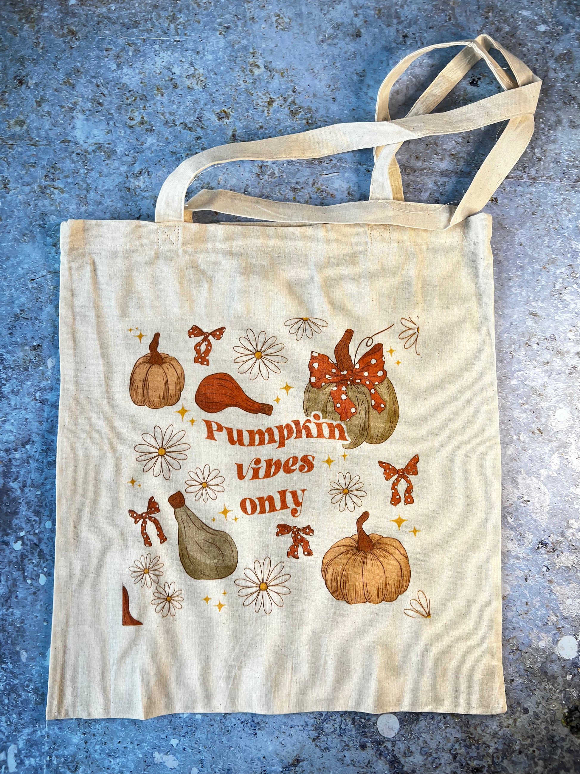 Baumwolltasche „Pumpkin Vibes Only“ – Naturfarben, lange Henkel