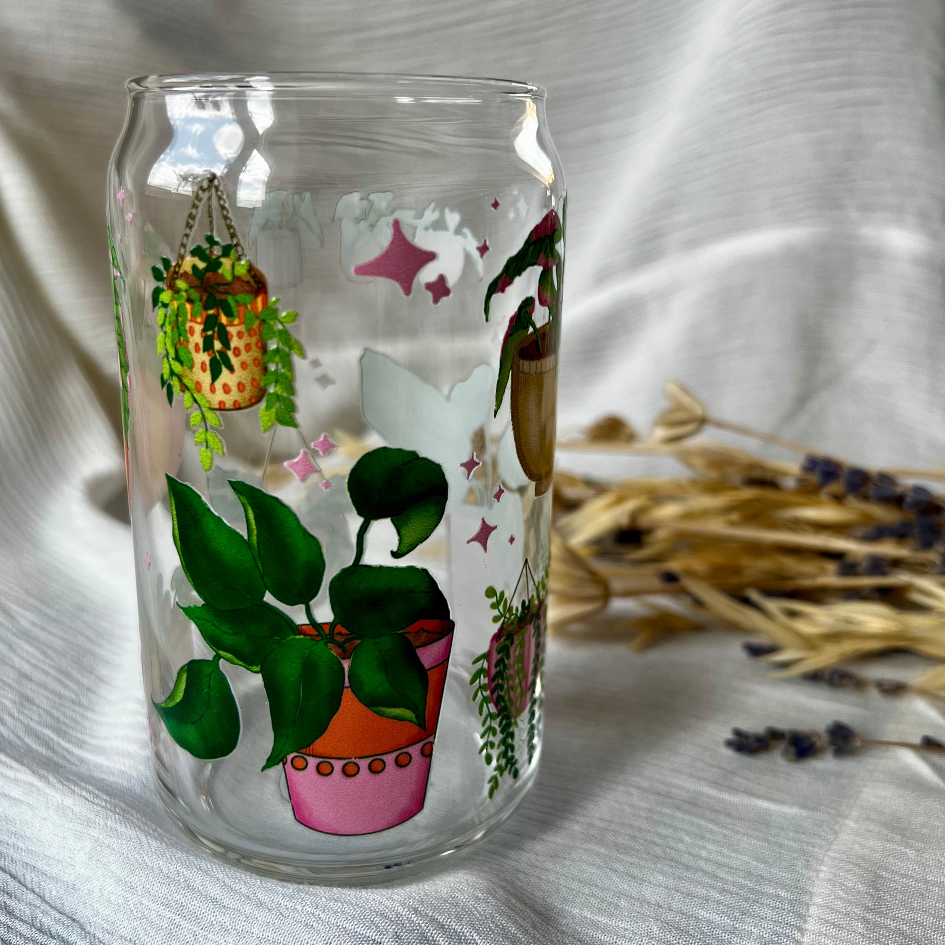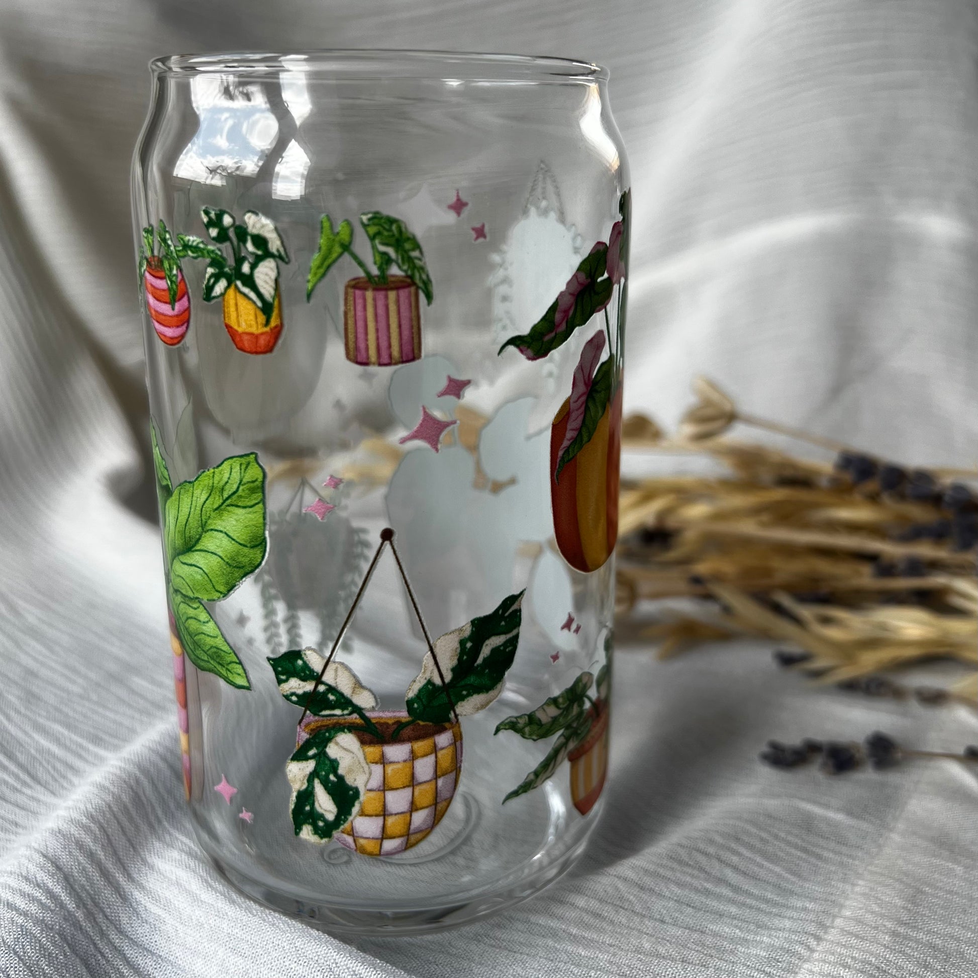 Design glass “Plant Parade” – 470 ml – UV DTF foil print with colorful plant pots