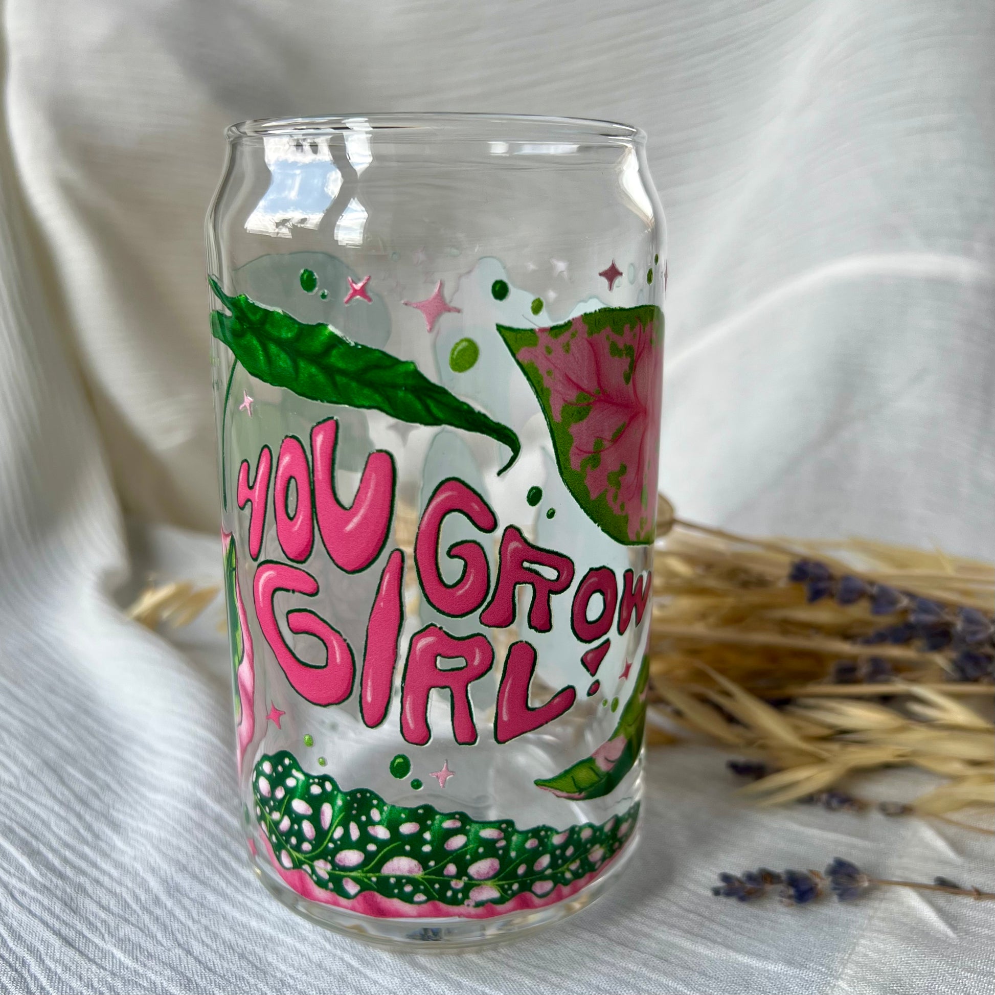Design glass “You Grow Girl” – 470 ml – UV DTF foil print with plant design