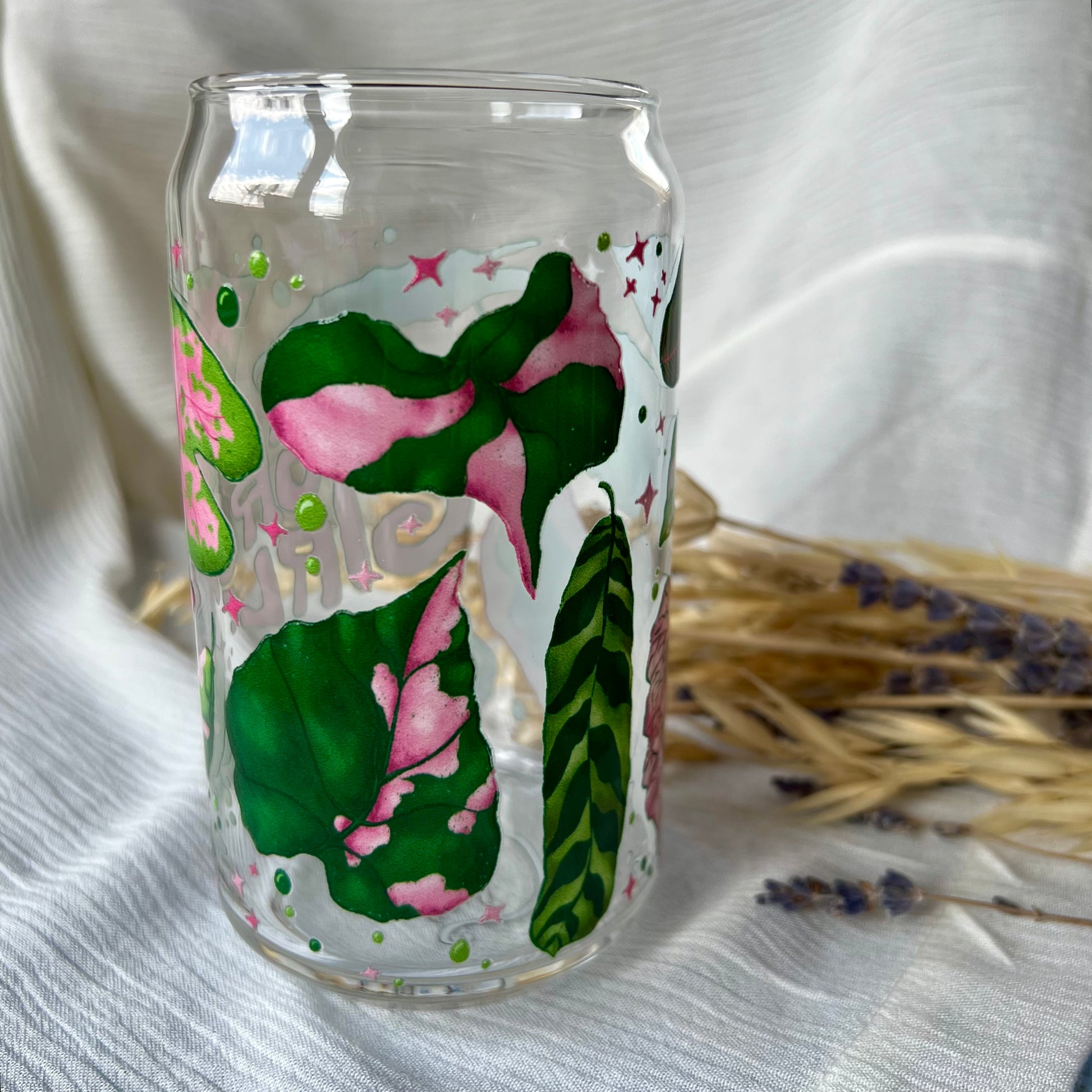 Bring color and plant joy into your everyday life with our "You Grow Girl" designer glass ! This high-quality 470 ml glass features beautiful plant designs—including alocasia leaves , calathea leaves , and even fictional plants—perfectly complemented by the motivational quote "You Grow Girl!" in cheerful pink.