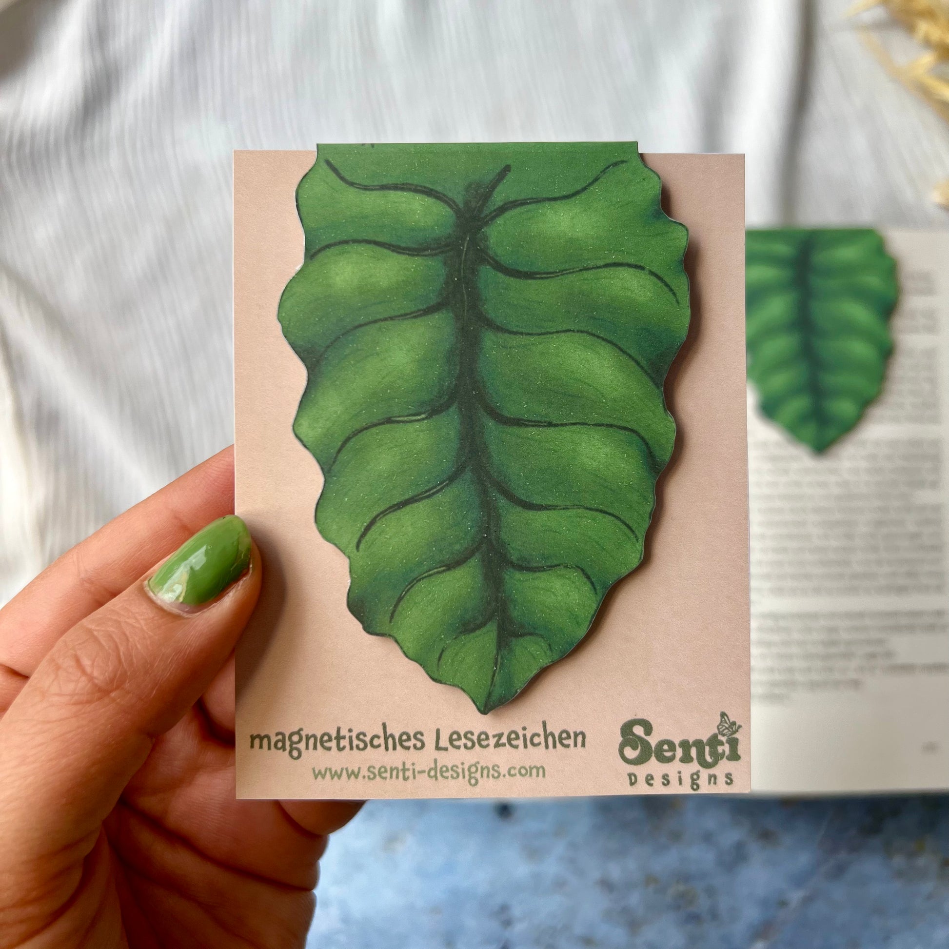 📖 Magnetic bookmark “Alocasia” – with alocasia leaf & magnetic closure