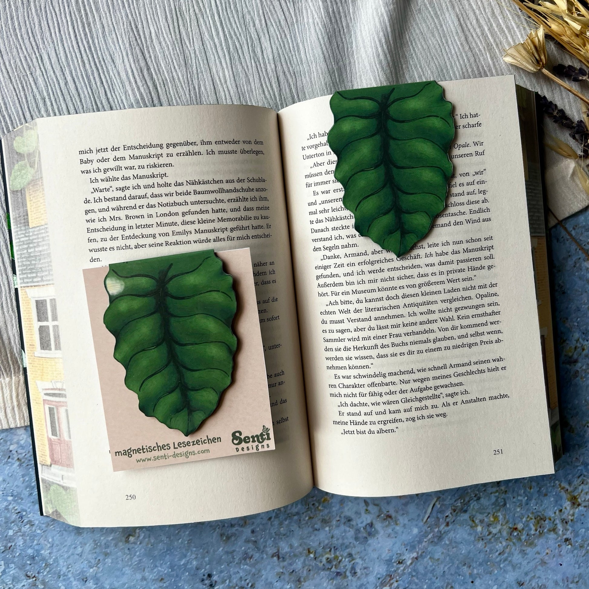 🌿 The magnetic closure snaps shut with a gentle click and holds your bookmark securely in place – without damaging the book.