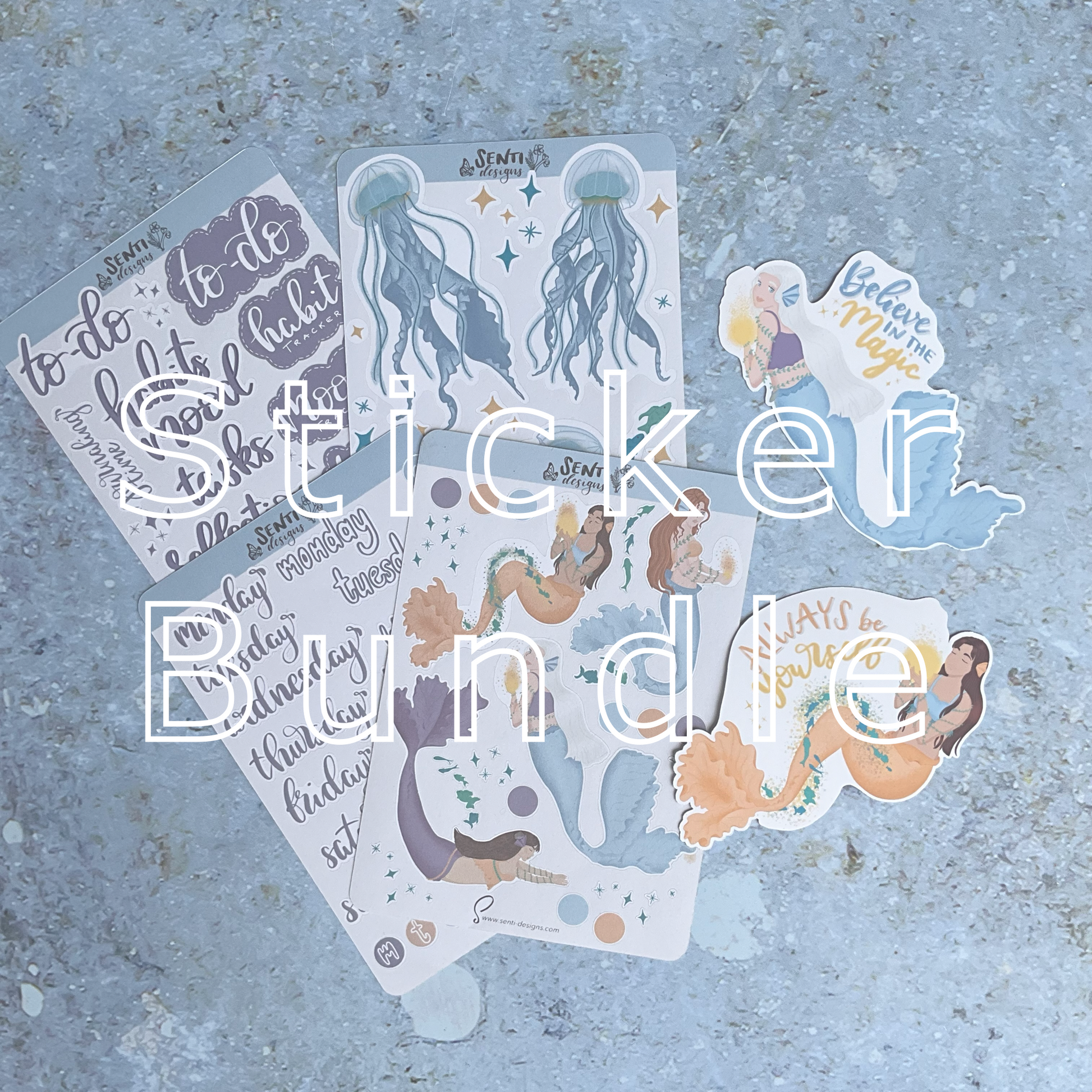 Handmade Sticker Sheet BUNDLE "Mermaid Journaling"